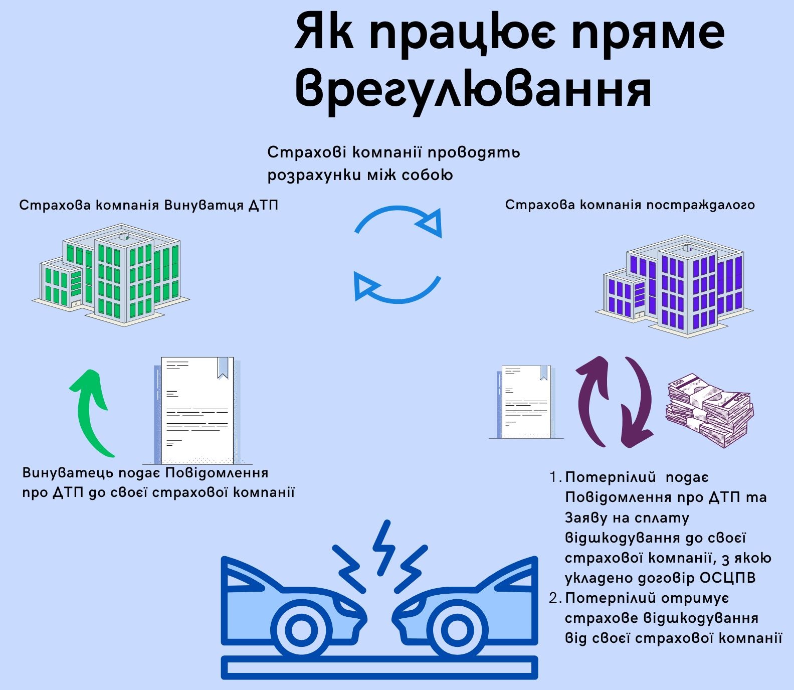 Насправді, це означає, що постраждала особа в ДТП виплату через свою страхову компанію, без необхідності звертатися до страхової компанії винуватця.
